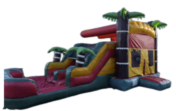 Bring vacation vibes straight to your backyard with the Tropical Splash Combo Adventure—a vibrant inflatable that blends bouncing, climbing, and sliding into one exciting island-themed experience. With palm tree accents and bright tropical colors, this unit instantly becomes the centerpiece of any summer celebration.